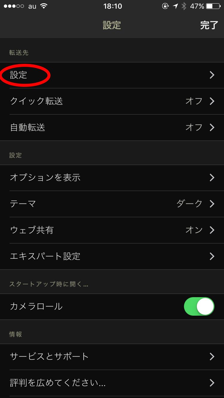 Dropboxに転送するときのオプションは、最初は「転送後に削除」をOFFにしておき、納得がいく設定ができあがってから「転送後に削除」をONにすることをおすすめします。