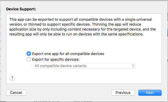 Export As: 上記の ipa ファイルの上位ディレクトリ名 TestApp-1.0.0 を入れます。ディレクトリがなければ自動的に作られます。